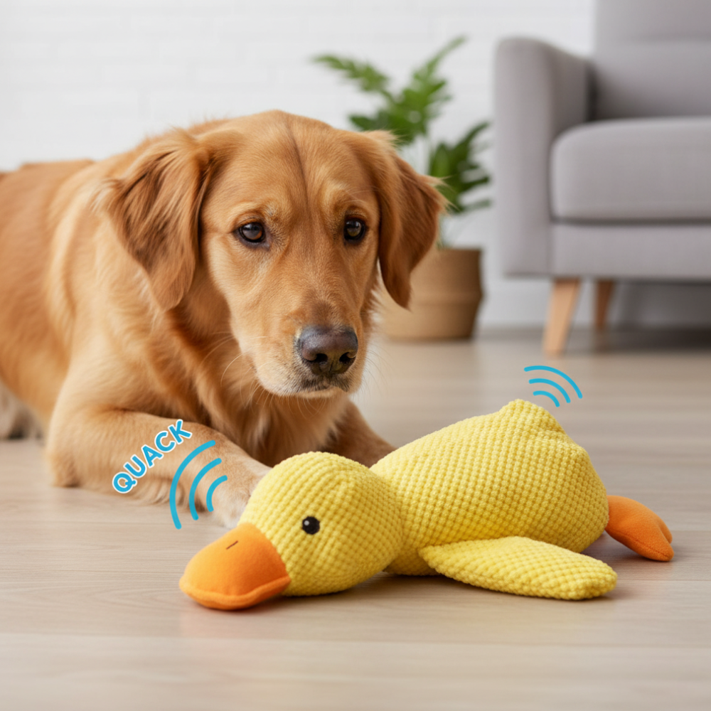 Ce canard apaise l’anxiété, réduit les comportements destructeurs et aide à nettoyer les dents.