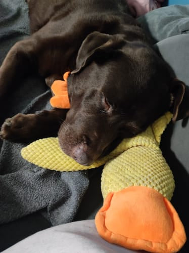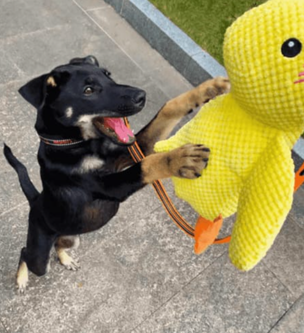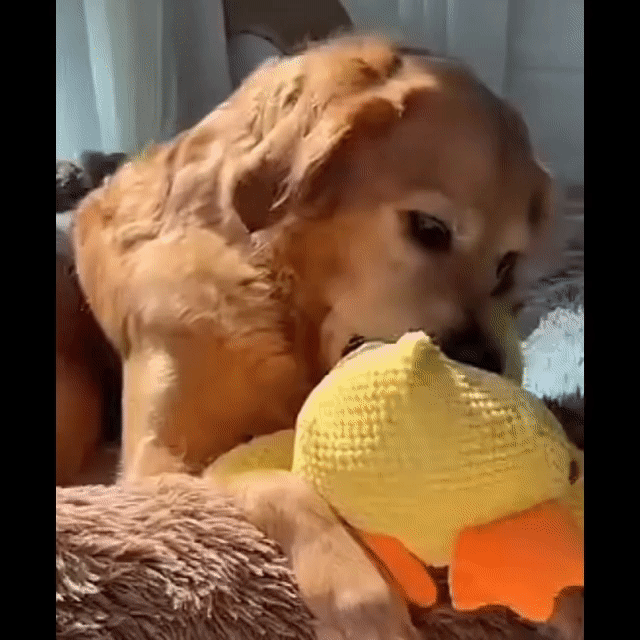 des maîtres disent que leur chien adopte le canard comme doudou préféré