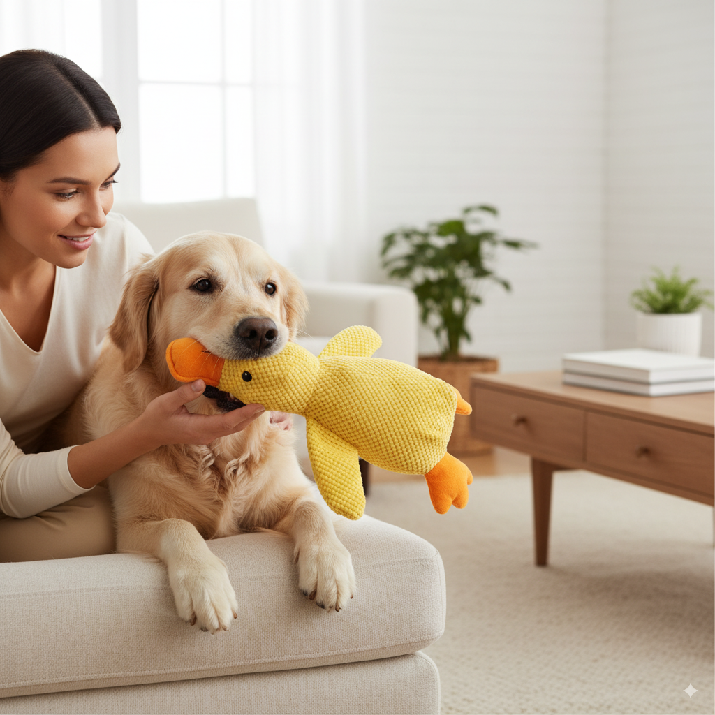 Le Canard Calmos™ transforme le stress de votre chien en sérénité et câlins.