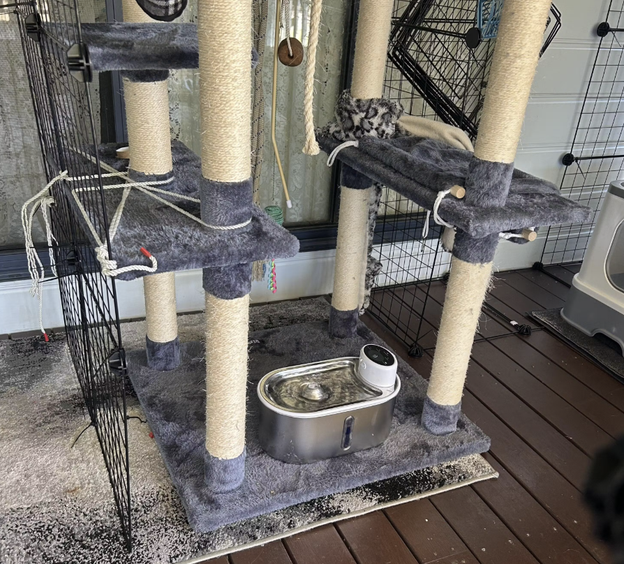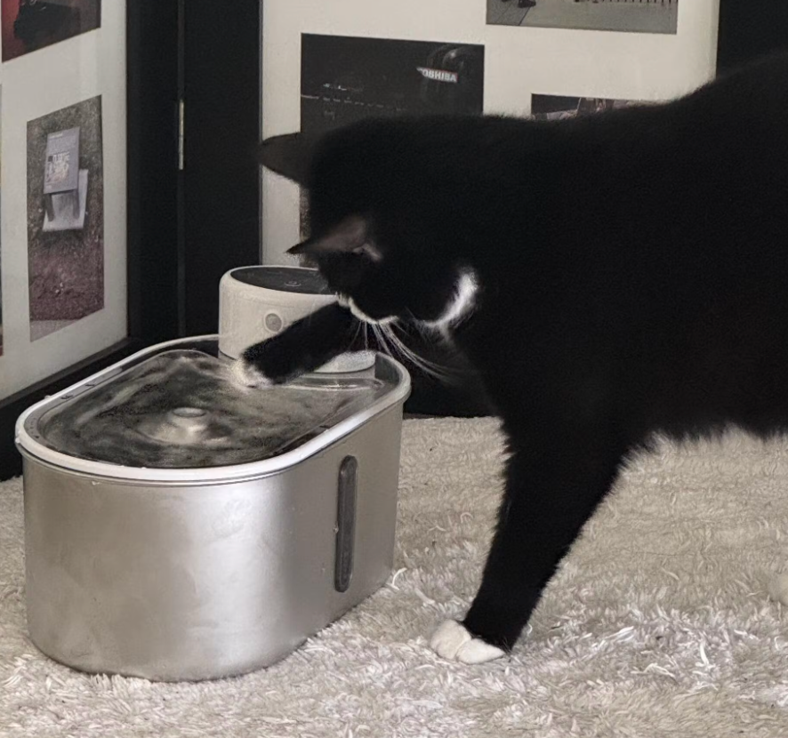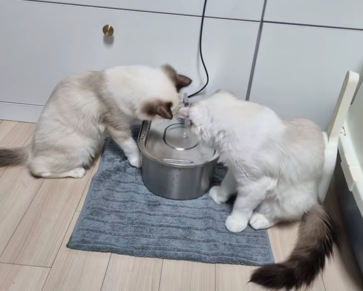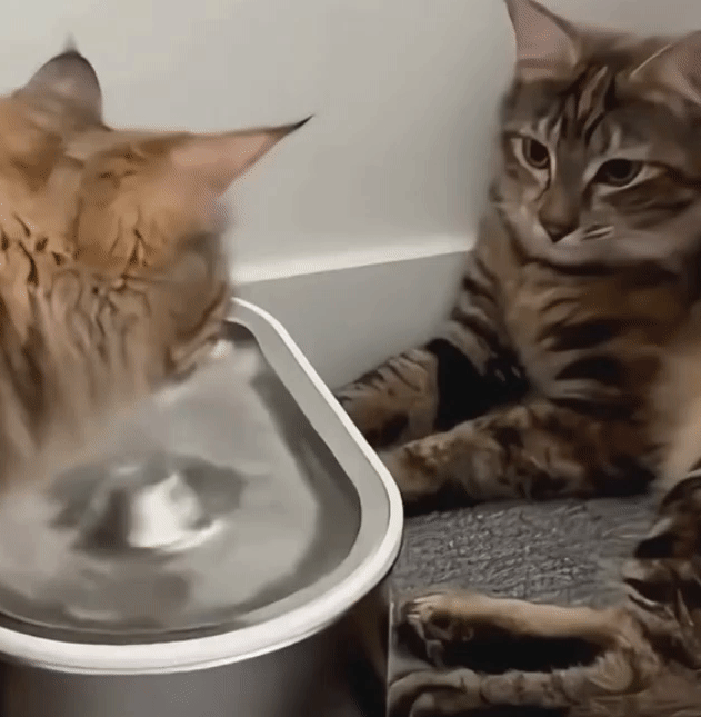 Mes chats boivent ensemble sans souci, trop mignon ! La fontaine est top.