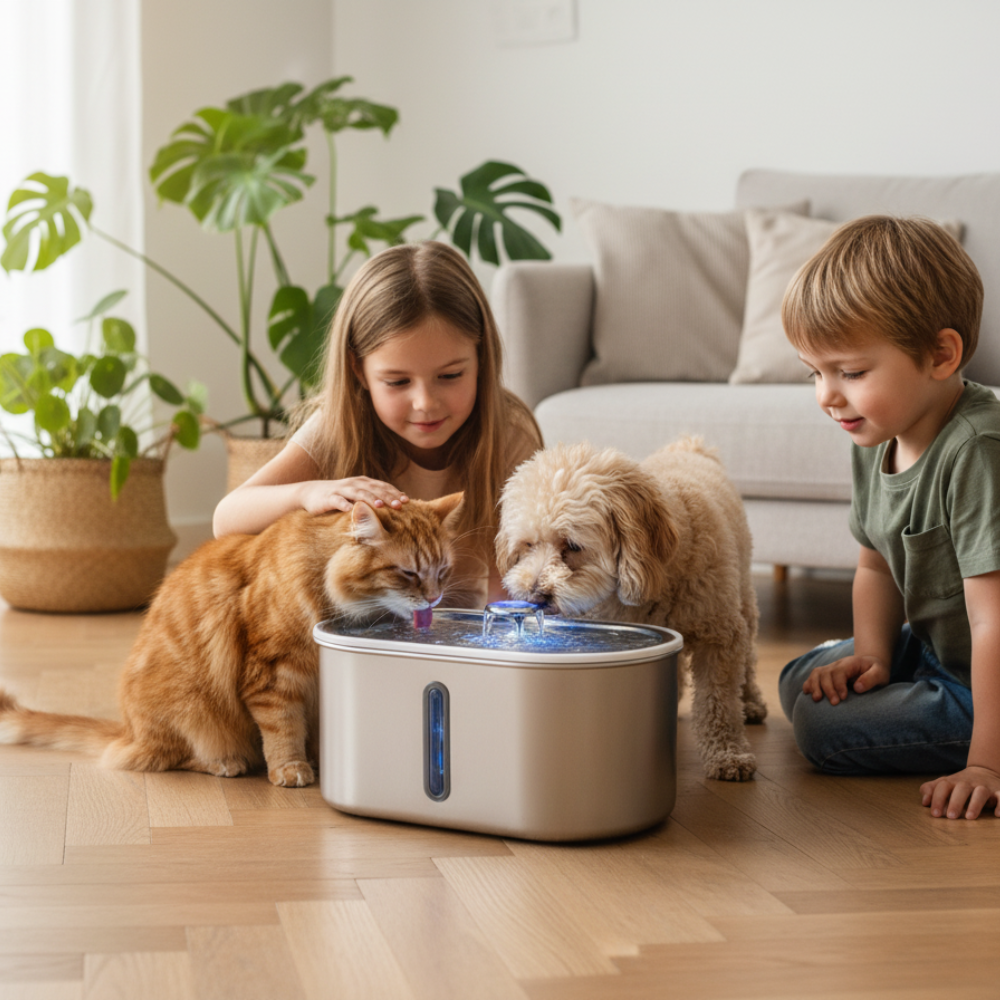 L’eau en mouvement stimule leur curiosité et favorise une hydratation naturelle, aidant à prévenir les troubles urinaires.