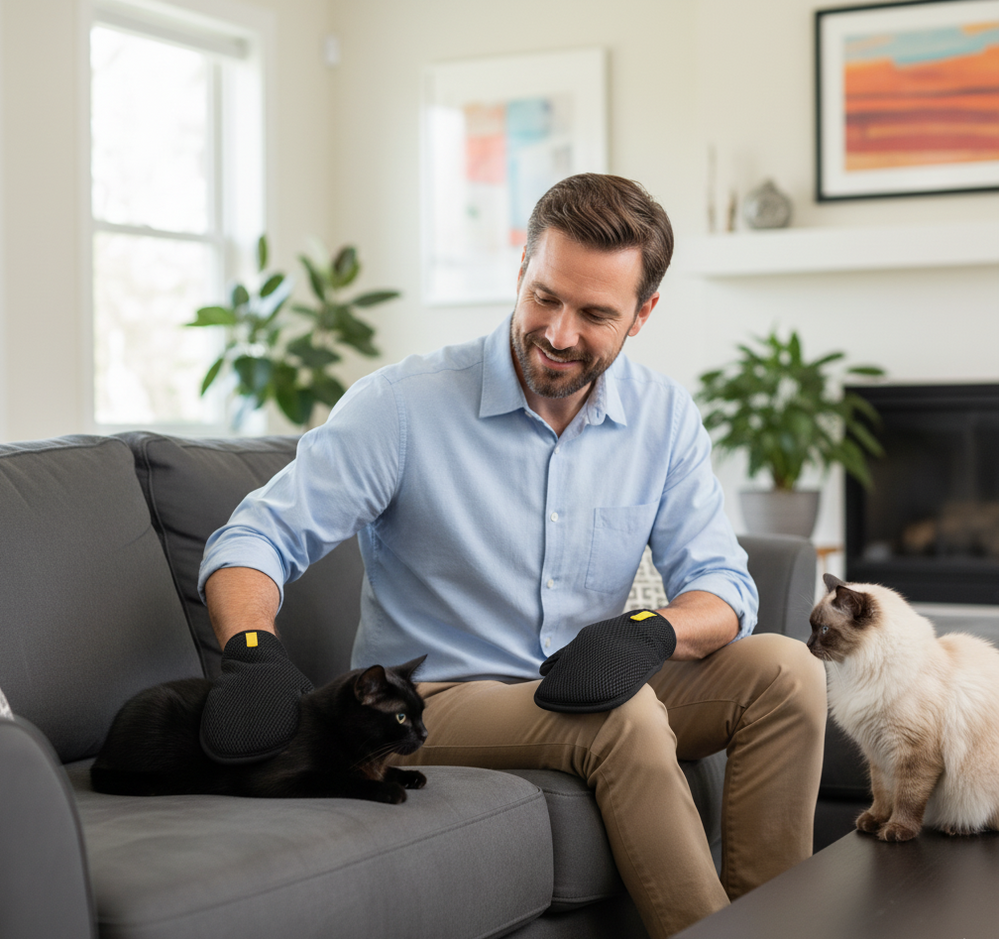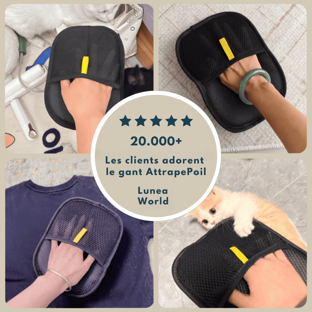 Avec le gant Attrape-poils, dites enfin adieu aux poils envahissants et profitez pleinement de votre compagnon sans aucune contrainte !