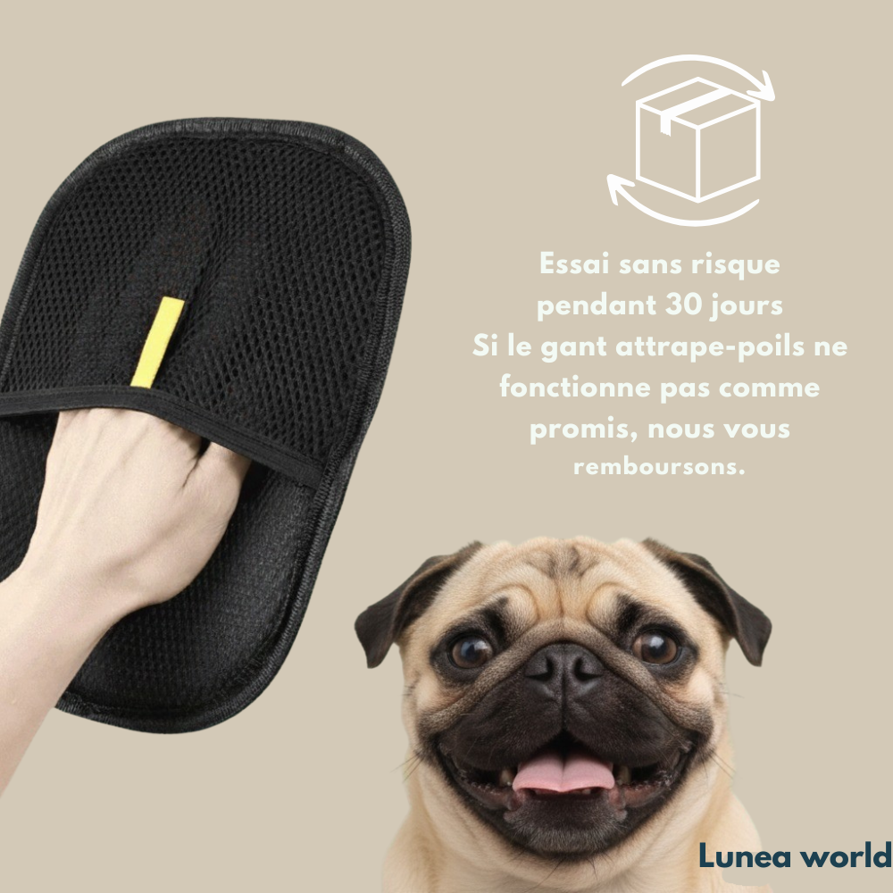 Aucun problème ! Vous pouvez essayer notre gant attrape-poils pendant 30 jours, sans aucun risque.