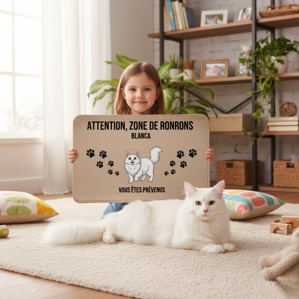 Ma fille adore voir notre chat sur le paillasson