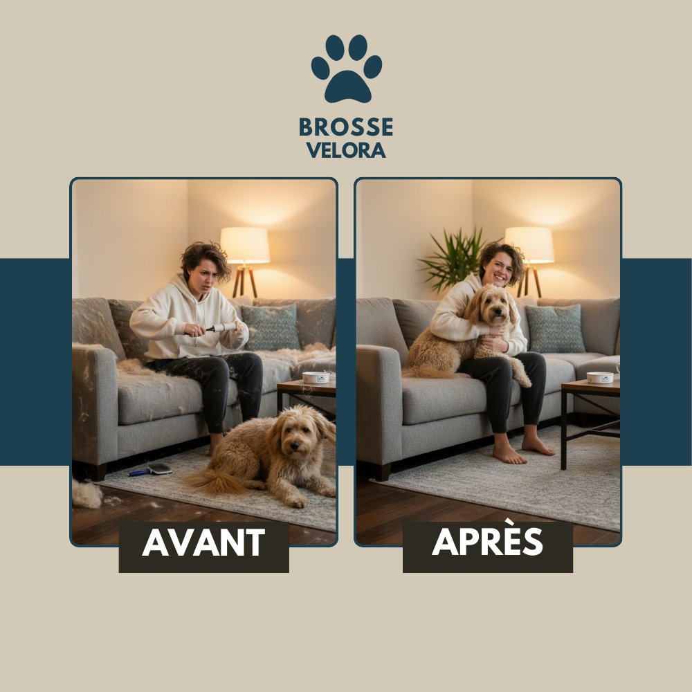 👉 Voilà ce que Velora™ Brush apporte à votre compagnon (et à votre maison).