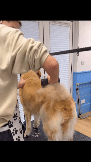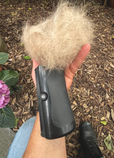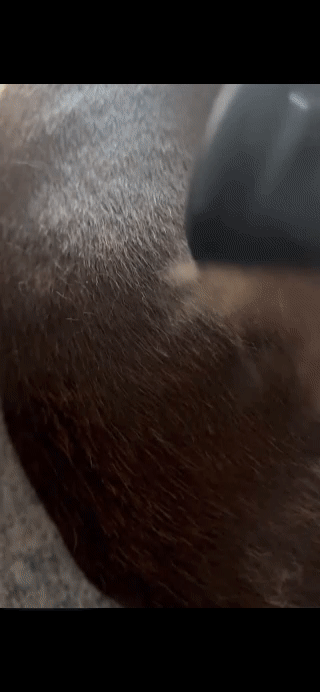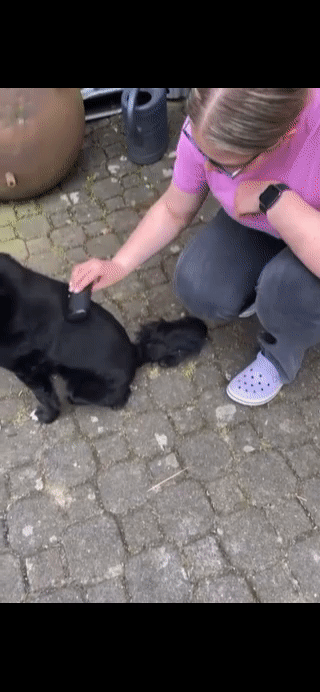 Cette démonstration montre comment la Velora™ Brush, utilisée par un vrai professionnel, élimine jusqu’à 95 % des poils morts dès le premier passage. Vous voyez la brosse pleine de poils, l’animal détendu, et la peau respectée.