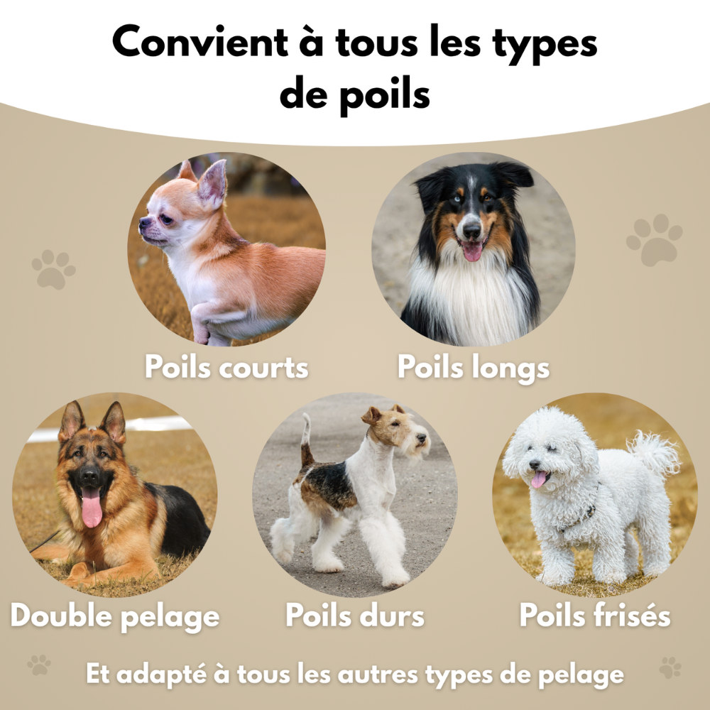Oui ✔ Elle est adaptée aux chiens et chats, quel que soit leur type de pelage : court, long, épais ou fin.