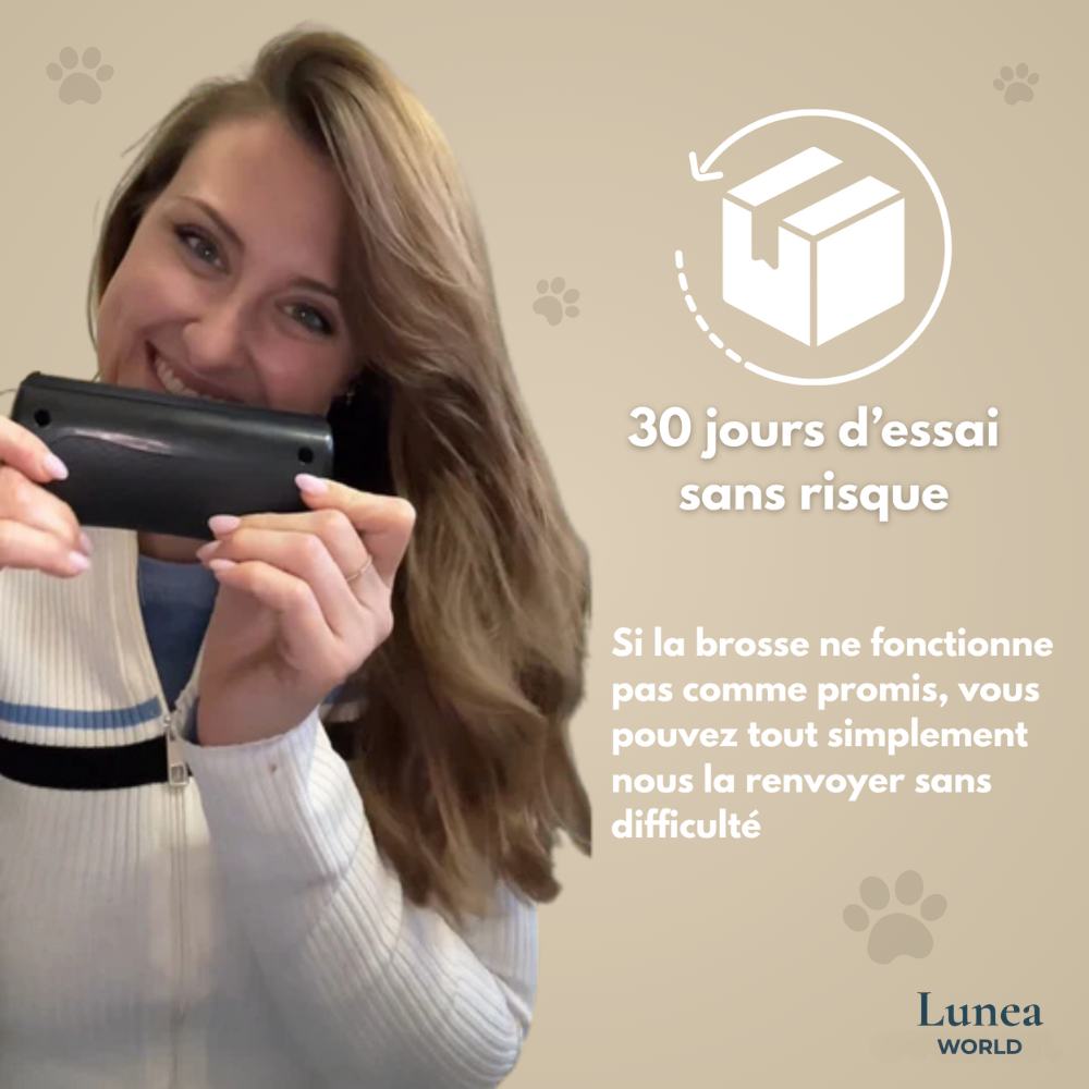 Aucun risque ✨ Vous bénéficiez d’une garantie 30 jours satisfait ou remboursé. Si la brosse ne vous convient pas, vous pouvez nous la renvoyer et être intégralement remboursé(e).